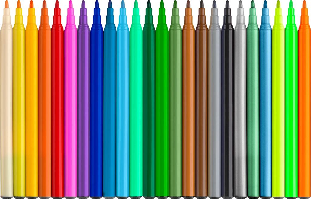 Culori stralucitoare, 18 clasice, 3 metalizate si 3 neon.