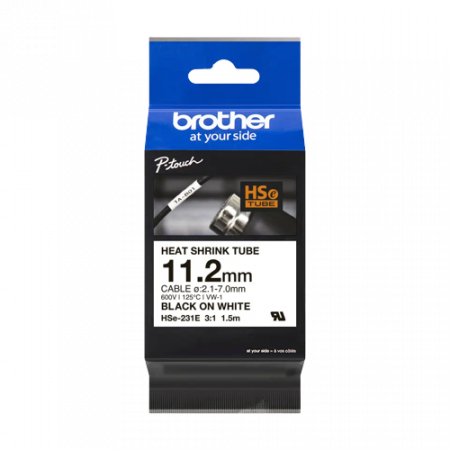 Această casetă cu bandă HSE-231E de 11,2 mm negru pe alb a fost concepută special pentru marcarea și identificarea cablurilor, fibrelor și firelor cu un diametru exterior de 2,1 mm - 7,0 mm.