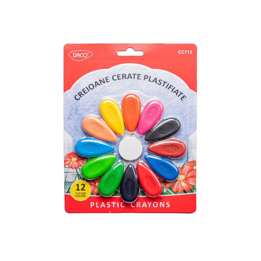 Setul de 12 creioane colorate cerate plastifiate de la DACO este ideal pentru desen, colorare si joaca creativa.