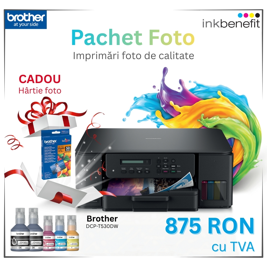 Fa-i Plinul si Imprima: Imprimanta compactă DCP-T530DW 3-in-1 tipărește mai mult cu flacoane de cerneală cu randament foarte mare, reducând costul pe pagină în culoare. Umple rapid tancurile în câteva secunde, fără a fi nevoie să ții sticlele, ceea ce face reumplerea simplă și fără mizerie. Sistemul inovator de blocare a sticlelor cu cheie asigură că întotdeauna reumpli culoarea corectă.