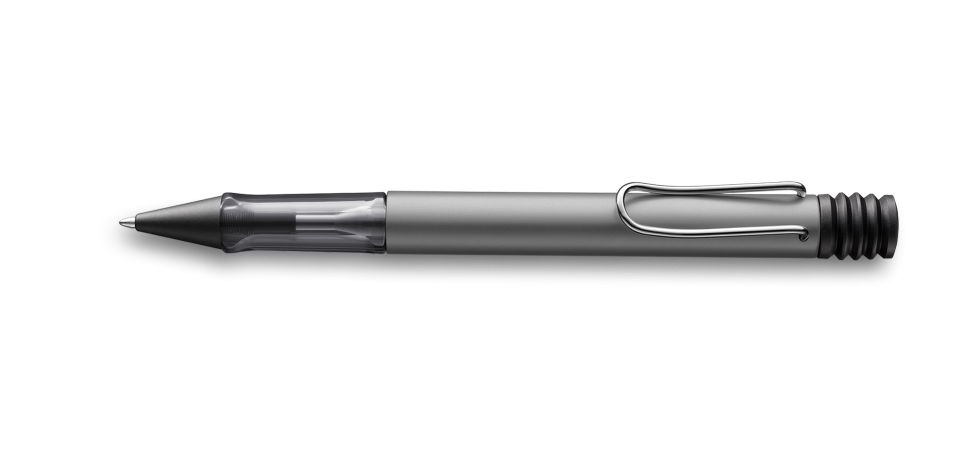 Detalii pix cu mecanism Lamy AL-star graphite: aluminiu anodizat graphite / clip metalic / grip din plastic ergonomic / rezerva pix Lamy M16 M black